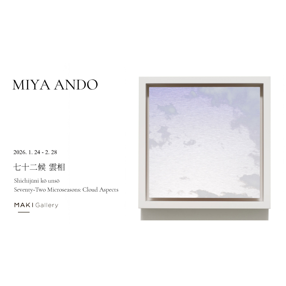 このたびMAKI Galleryは、ニューヨークを拠点に活動するミヤ・アンドウの弊社で3度目となる個展「七十二候 雲相」を天王洲ギャラリーで開催いたします。 本展では、古来より東アジア圏に伝わる暦である“七十二候(しちじゅうにこう)”に基づいて構成された、アンドウの代表的な雲シリーズの新作72点を展示します。七十二候は1年を約5日ずつに分け、季節の移ろいに伴って生じる自然界のごく小さな変化をすくいとる体系です。時間を明確な枠組みで区切る一方で、実際には微細な推移の積み重なりによって理解しようとする、東洋独自の時間感覚を反映しています。 展覧会タイトルの一部である“雲相”は、雲の様相や位相、状態などを意味し、古来の観察においての思想に由来します。この概念は、大気の状況や時の経過によって形づくられる、ある一瞬における雲の現れ方へと私たちの意識を向けさせます。色彩の連なりと自然界の微細な変化を通じて72もの候を可視化し、時間を連続的なプロセスとして提示する本展を、ぜひこの機会にご高覧ください。 【開廊時間】11:30-19:00 【休廊日】日・月 |